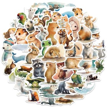 1 Pack of 50 Different Cute Cat Bunny Stickers for Helmet, Wall, DIY Decoration